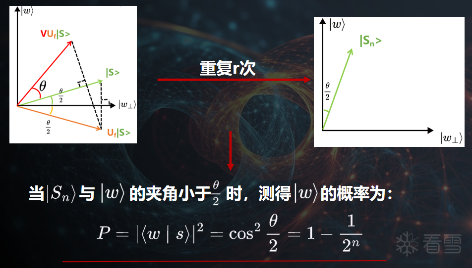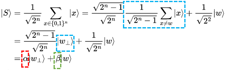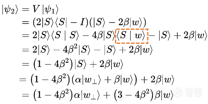 同理第一次迭代,把结果整理成|S>与|w>组合