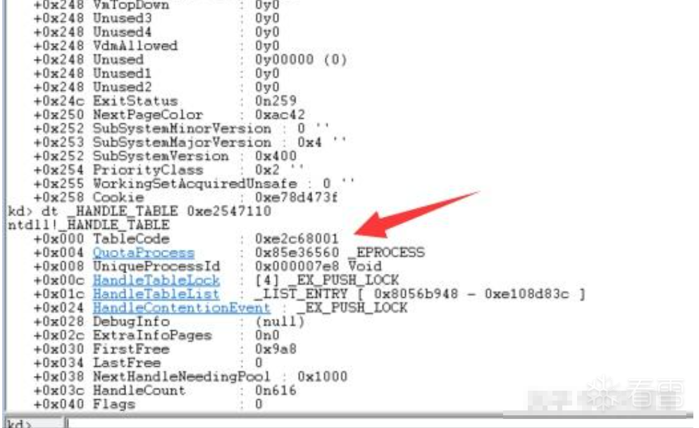 TableLevel = TableCode & 0x03; // 句柄表等级 TableCode = TableCode & ~0x03; // 清除等级标志位 DbgPrint("TableLevel = %x\n", TableLevel);