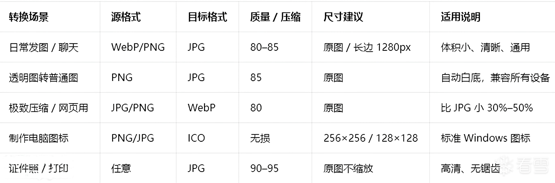 1. 格式支持:输入 JPG/PNG/GIF/BMP/WebP/TIFF/HEIC/PSD/RAW (CR2/NEF) 等 50+;输出 JPG/PNG/WebP/GIF/BMP/TIFF/ICO/SVG 等