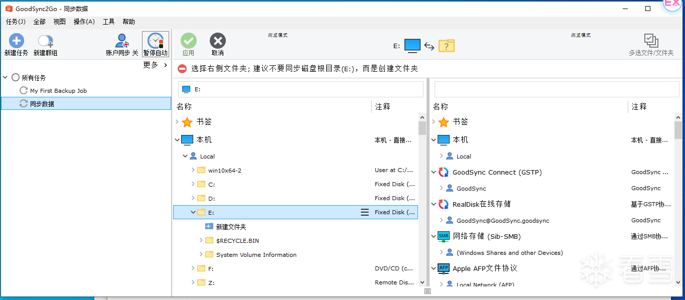 GoodSync利用创新的同步算法,可以有效防止文件误删除,数据意外丢失,并消除重复的文件。GoodSync已经从用户和媒体获得许多衷心的赞扬和高度评价。本产品所具备的强大技术能力,使它表现出显著地操作易用性,同时也是目前唯一实现真正双向数据同步的解决方案。