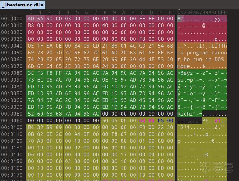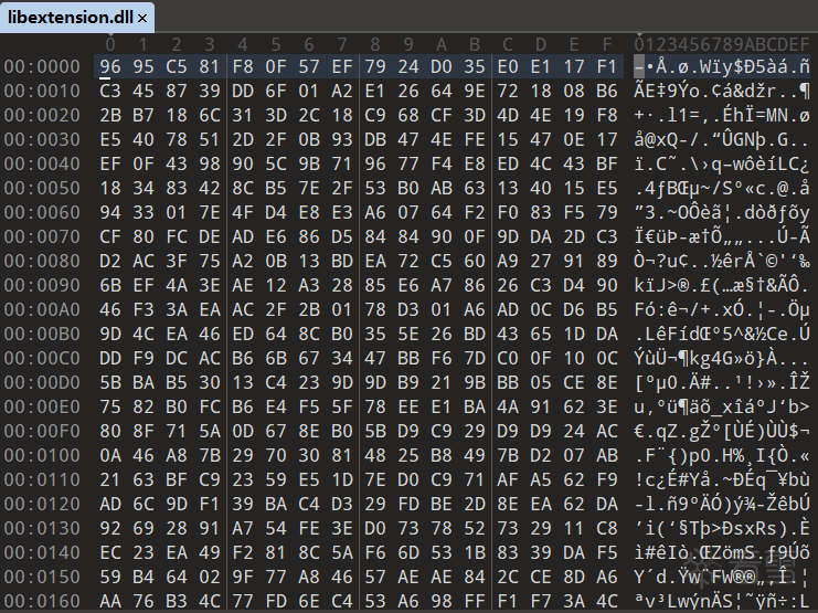 附件解压出来是一个exe和一个dll。分析发现游戏本体和dll都被处理过,DIE提示游戏本体被打包,而dll会被识别为未知二进制文件,进一步用010editor打开dll会发现整个dll都被加密了(完全看不到PE文件格式特征)