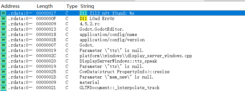 原理是godot内部有一个处理报错的宏定义,该宏会将报错的相关明文信息嵌入在程序中