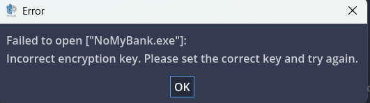 godot游戏实质上是由引擎和资源文件组合成的(即DIE提示的“打包”),解包游戏可以获得游戏开发时使用的代码和素材等资源文件,所以第一步可以先尝试解包游戏。用GDRETools解包exe会发现解包失败,提示需要设置密钥: