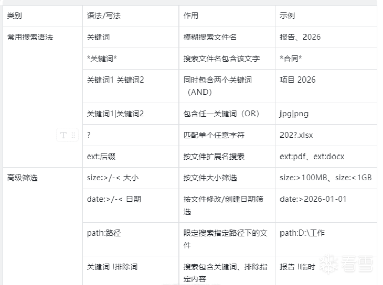 2. 实时更新:后台监控文件增删改,结果自动刷新,无需手动重建索引