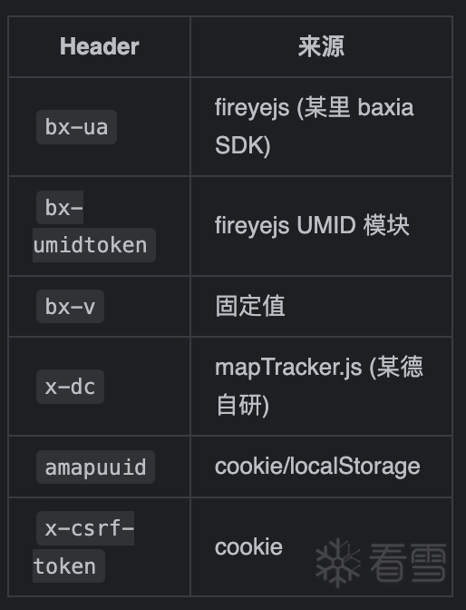 其中最核心的参数是bx-ua,参数x-dc测试不携带虽然也能成功,但是这个参数也是必要的,因为服务端也会验x-dc参数,只不过你少量请求不封你而已。这里面有一点要特别说明:某德地图需要登陆,不登录请求几次就会弹出登陆界面,而且不登录情况下接口的curl请求可能重发一次就失效了。