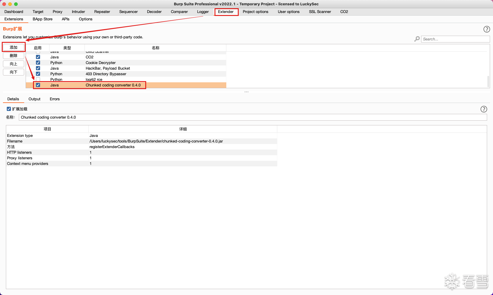 将分块传输插件下载到本地,并导入添加到BurpSuite扩展中使用