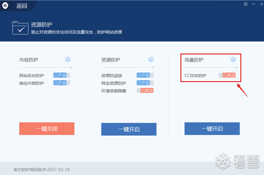 为了方便演示,在测试sqlmap分块传输注入前,需要将安全狗的cc攻击防护关闭