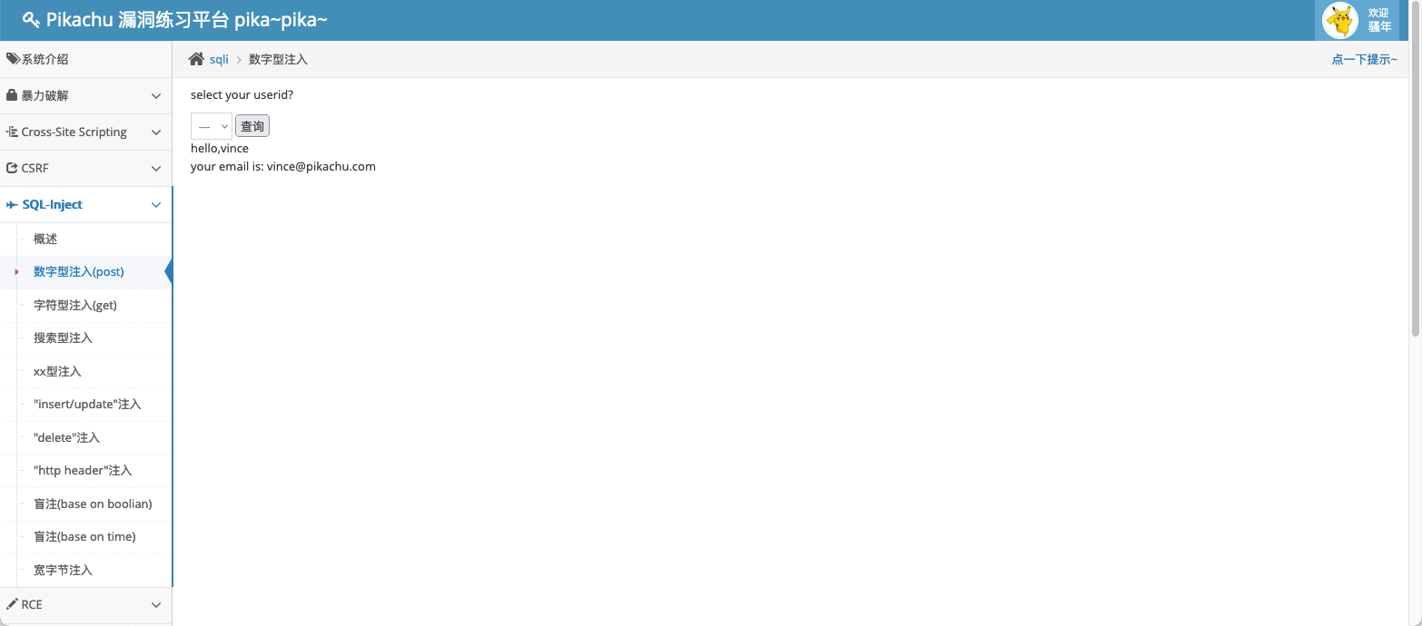 POST /pikachu/vul/sqli/sqli_id.php HTTP/1.1