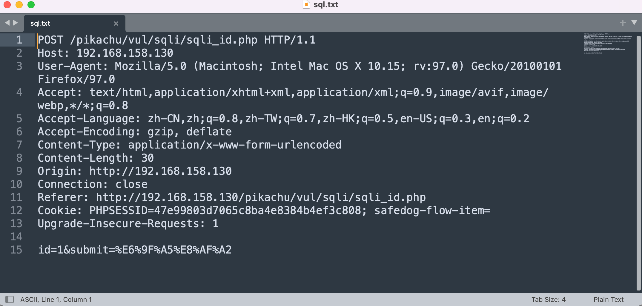 Cookie: PHPSESSID=47e99803d7065c8ba4e8384b4ef3c808; safedog-flow-item=