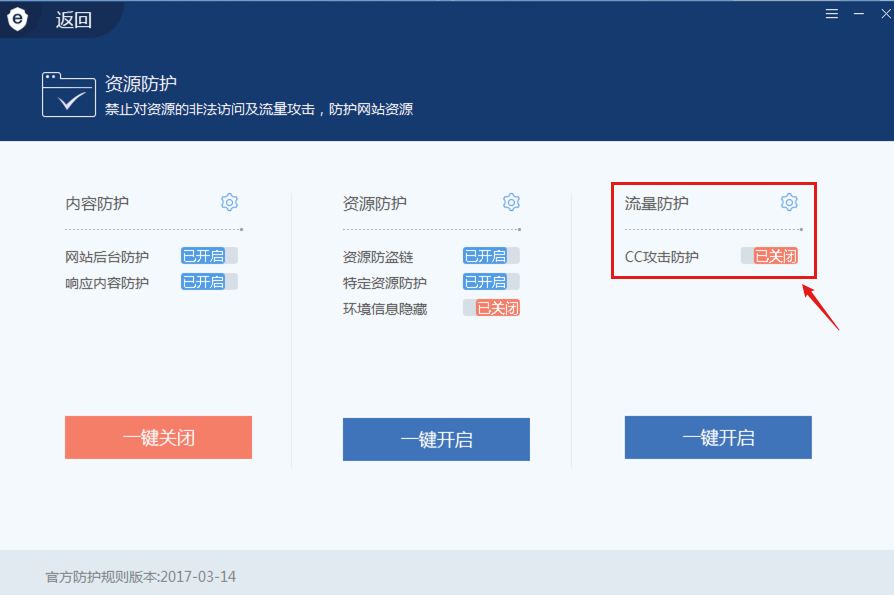为了方便演示,在测试sqlmap分块传输注入前,需要将安全狗的cc攻击防护关闭