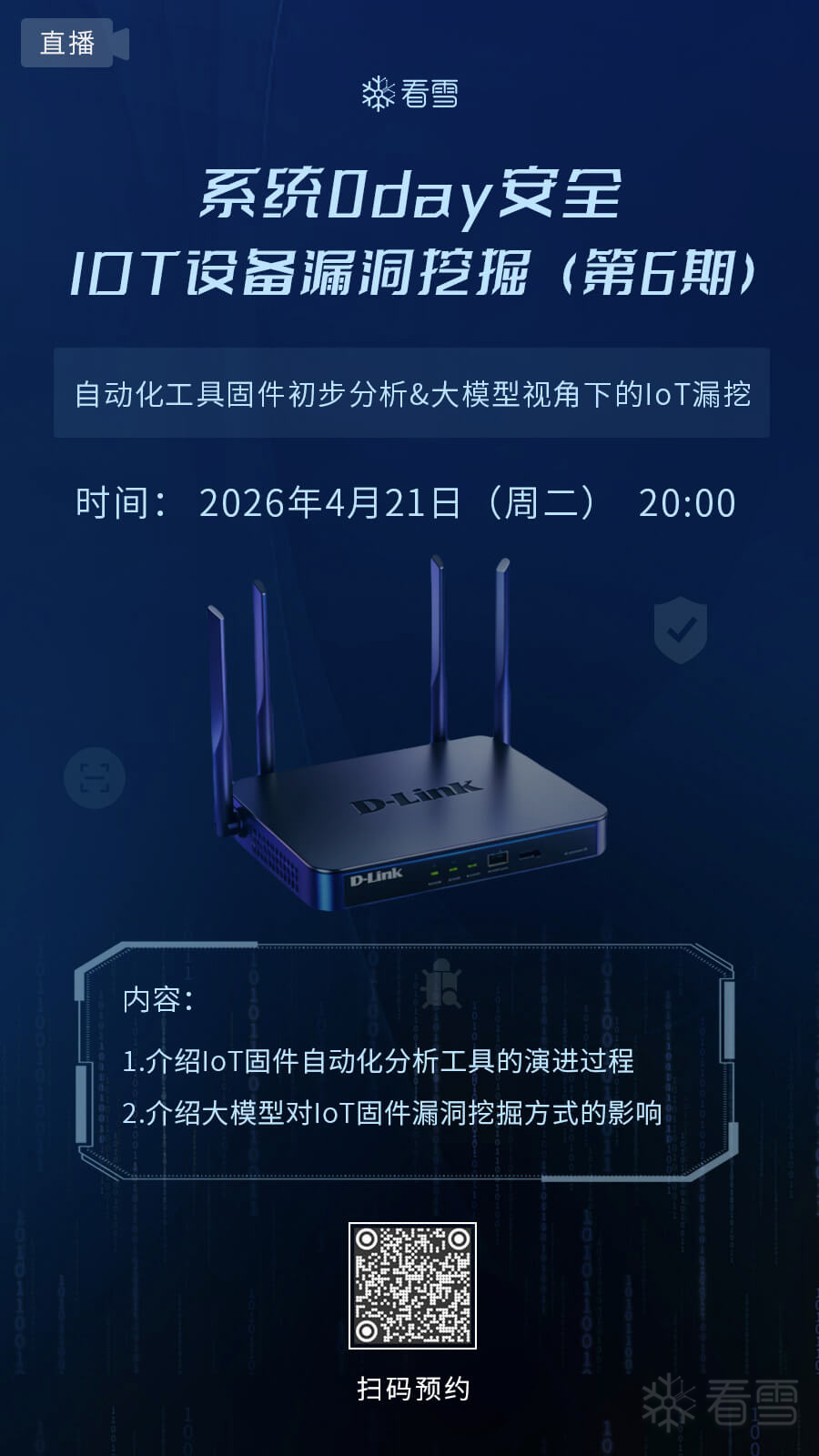 4月21日20点直播 | 自动化工具固件初步分析、大模型视角下的IoT漏挖
