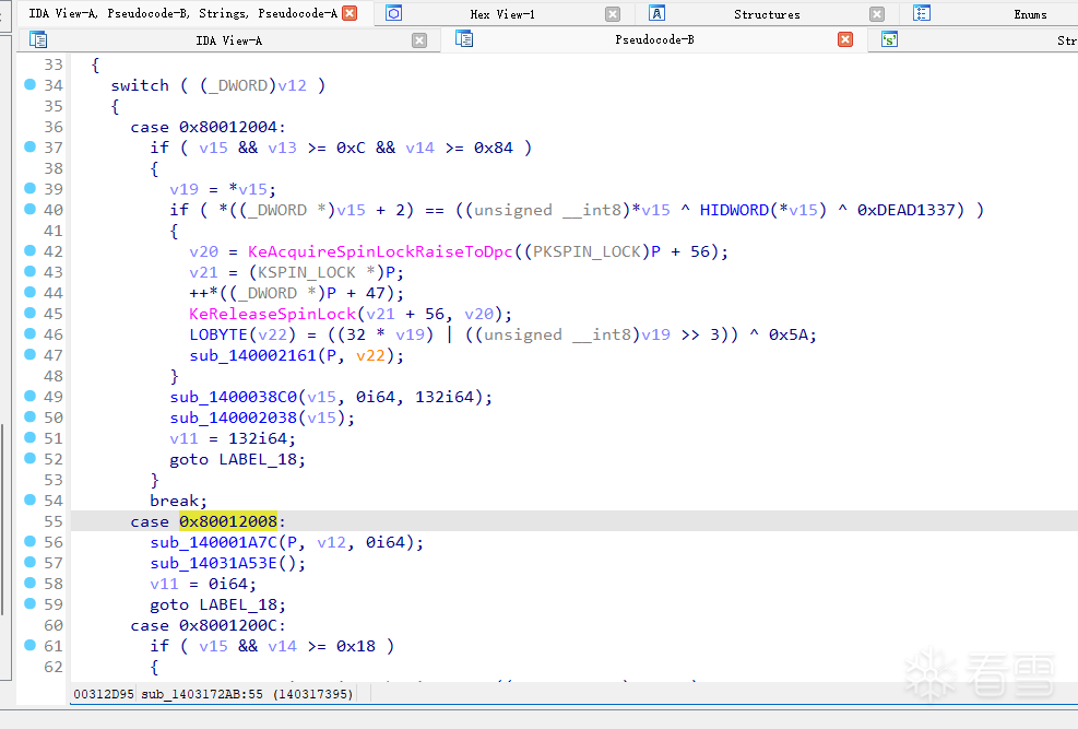 公开 writeup 里对这三个 IOCTL 的识别图如下: