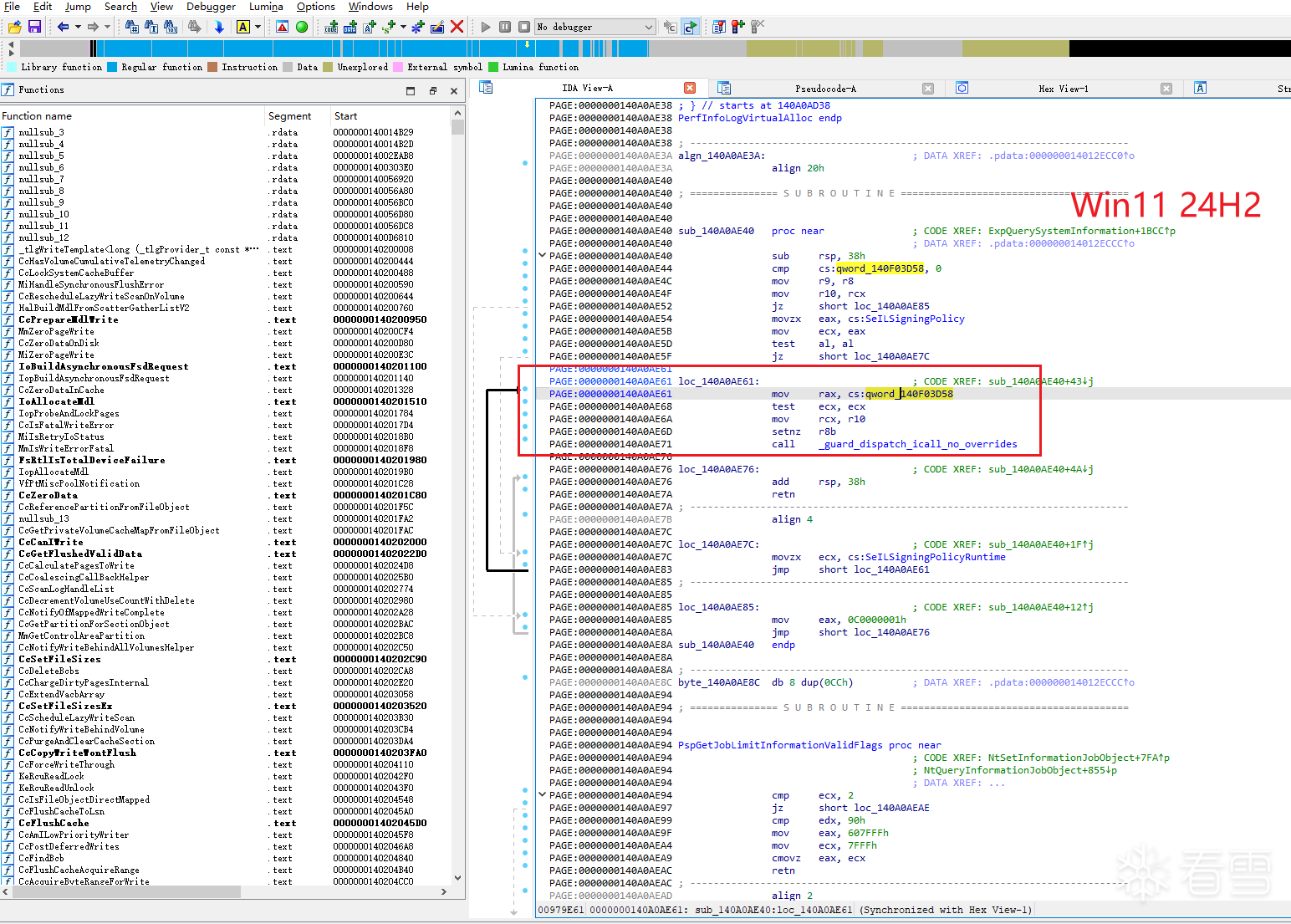经过笔者分析Win11 24H2版本的内核文件后,分析出一个符合我们要求的CFG点,如图2-4-1所示: