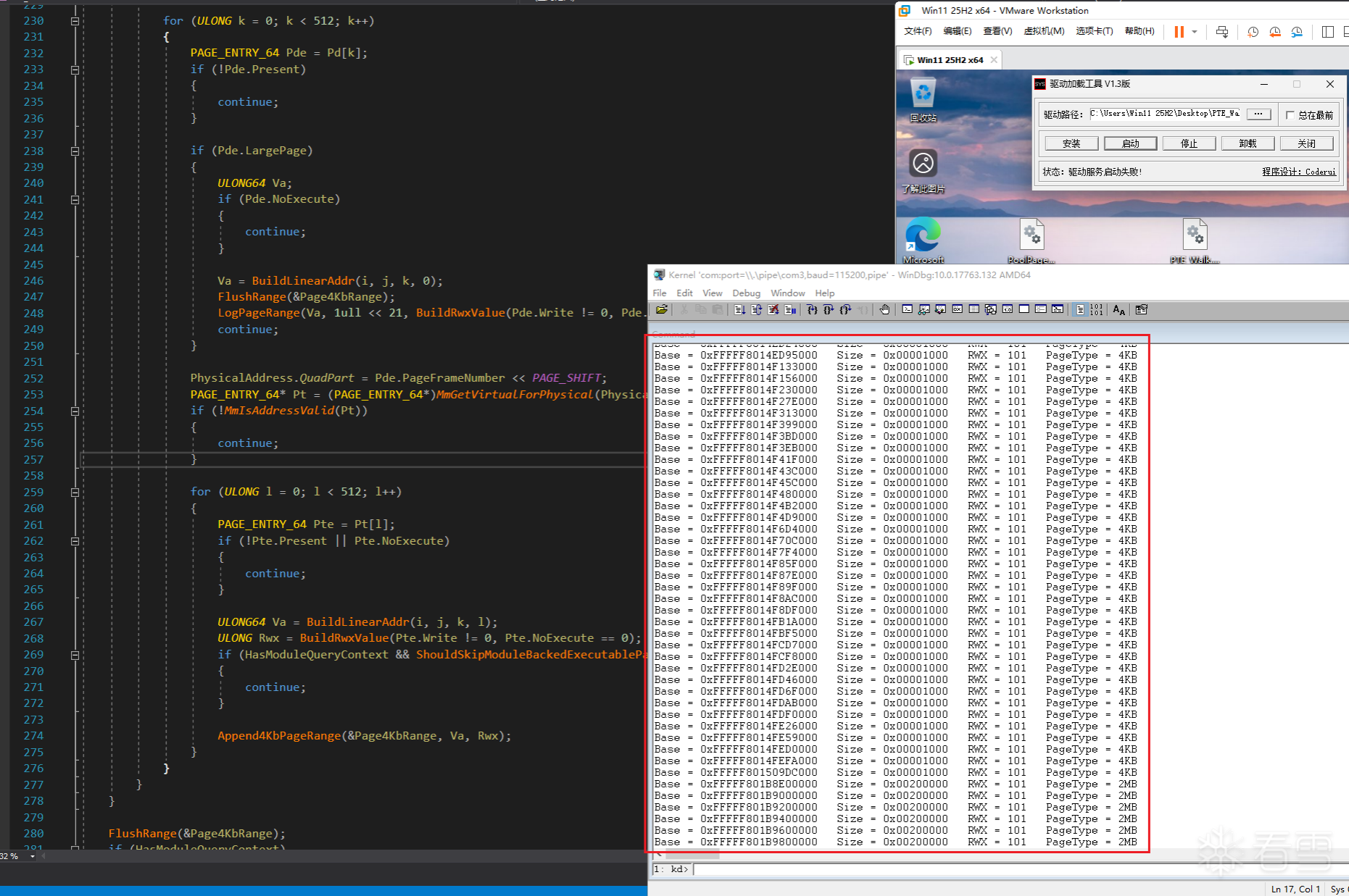 在Win11 25H2环境下测试,顺利枚举出所有的可执行内存页面信息,如图所示: