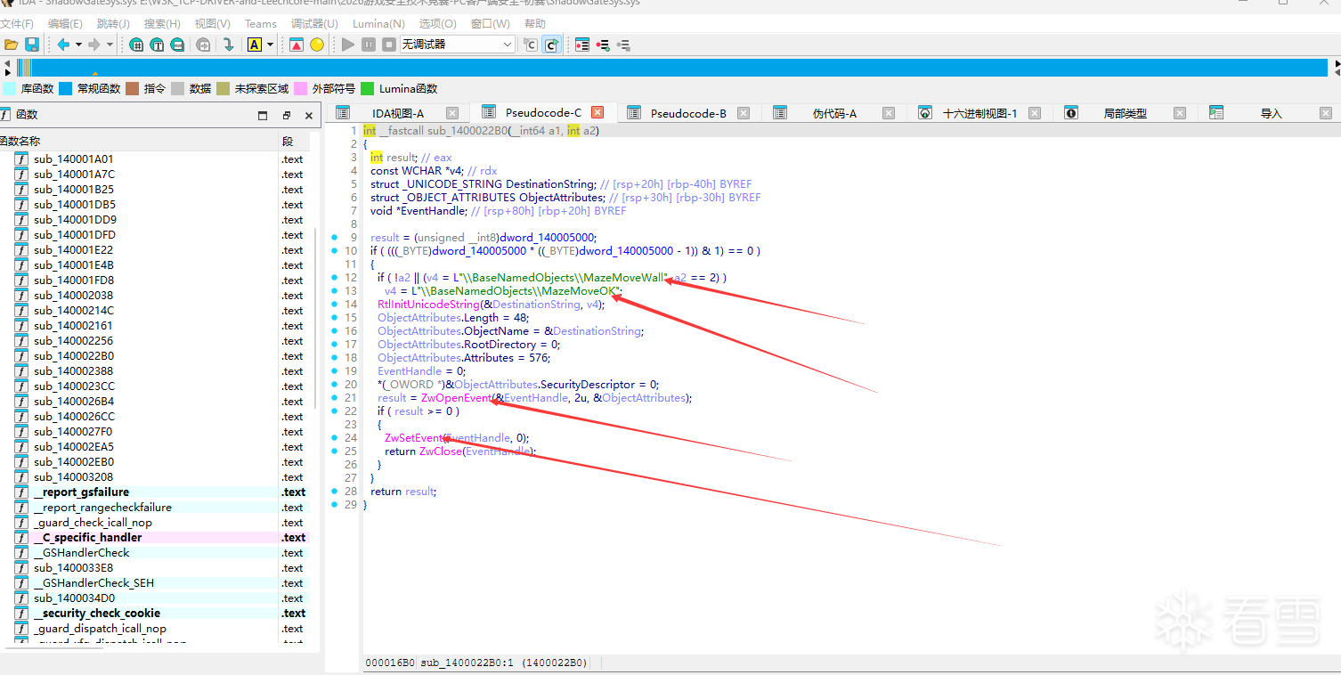 线索:ZwOpenEvent + ZwSetEvent