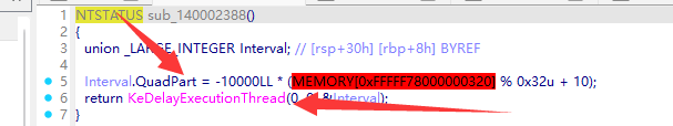 延时计算:Interval = -10000 * (SharedUserData!SystemTime % 50 + 10),即 10-60ms 随机延迟。