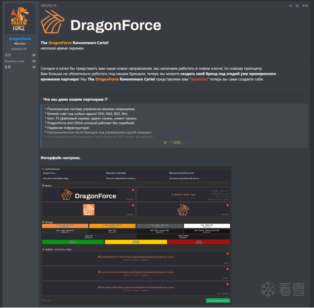 在后LockBit时代,DragonForce组织敏锐地捕捉到了底层攻击者市场的需求空白,迅速调整战略,通过降低门槛来换取攻击规模的爆发式增长。