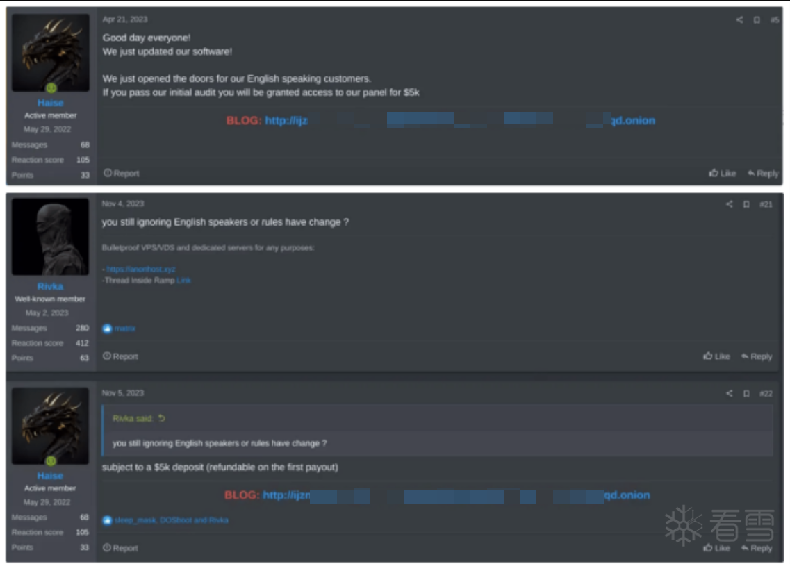 这两个看似独立的组织在 RAMP(Ransom Anon Market Place)论坛上构成了复杂的协作网络。情报显示,Qilin 的核心管理员“Haise”长期活跃于该论坛,并通过购买昂贵的顶部广告位来掌控流量分发。当潜在加盟商因无法满足 Qilin 的高技术门槛或资金要求时,往往会被广告引导至 DragonForce 的自动化平台。这种“高低搭配”的流量收割模式,表明勒索生态已形成跨组织的协同效应。