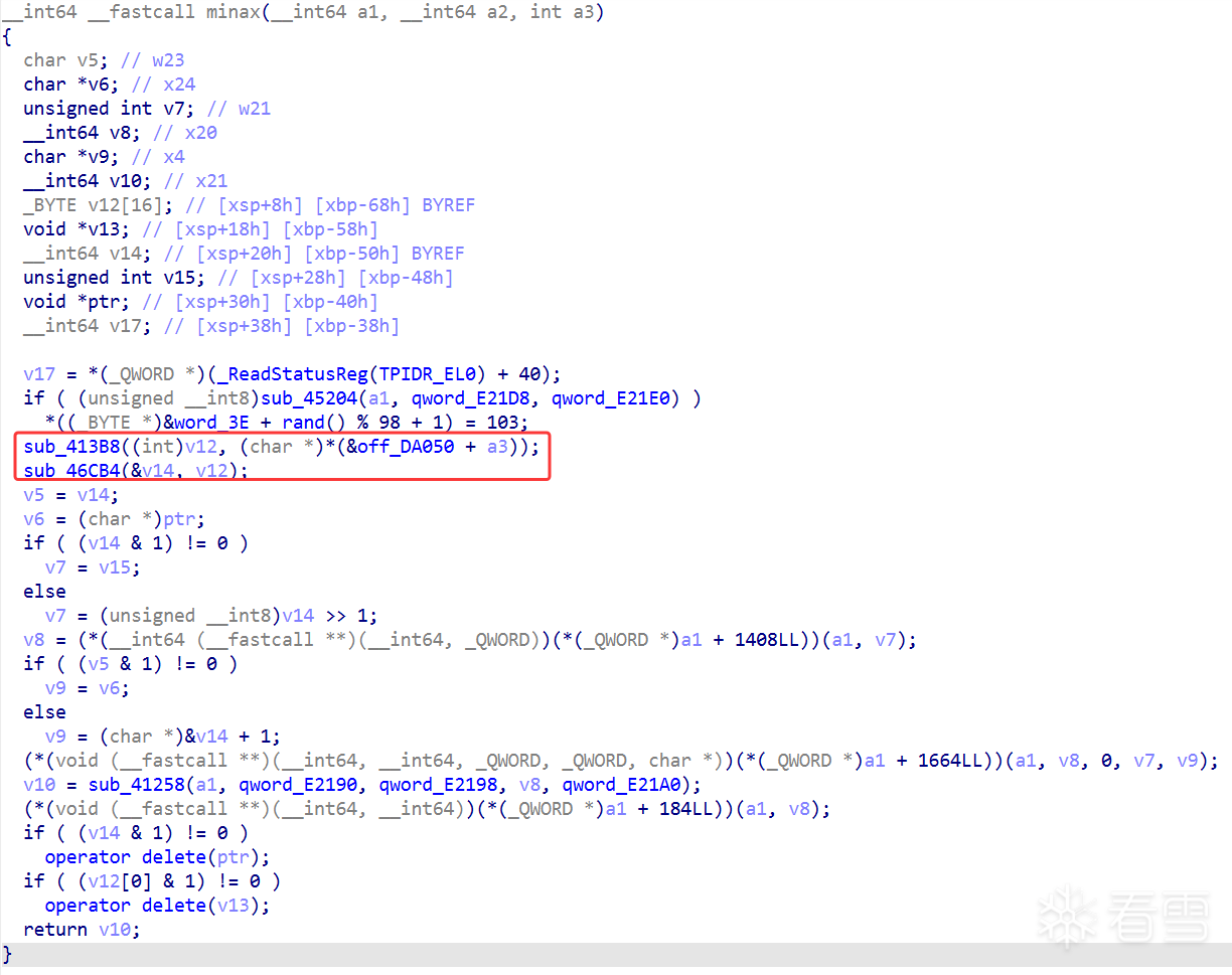 → 顺着 minax -> sub_46CB4 -> sub_469C0 拆链
