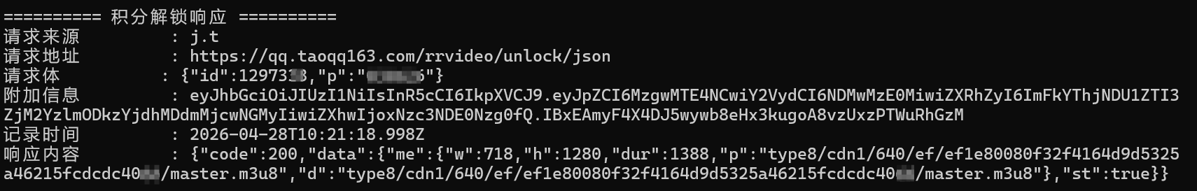 j.t(mode=1),再顺着Server.e.c/a -> abc.ea5/da5识别出 Native 编解码链。 - 最后进入视频详情与积分解锁场景,用动态日志验证