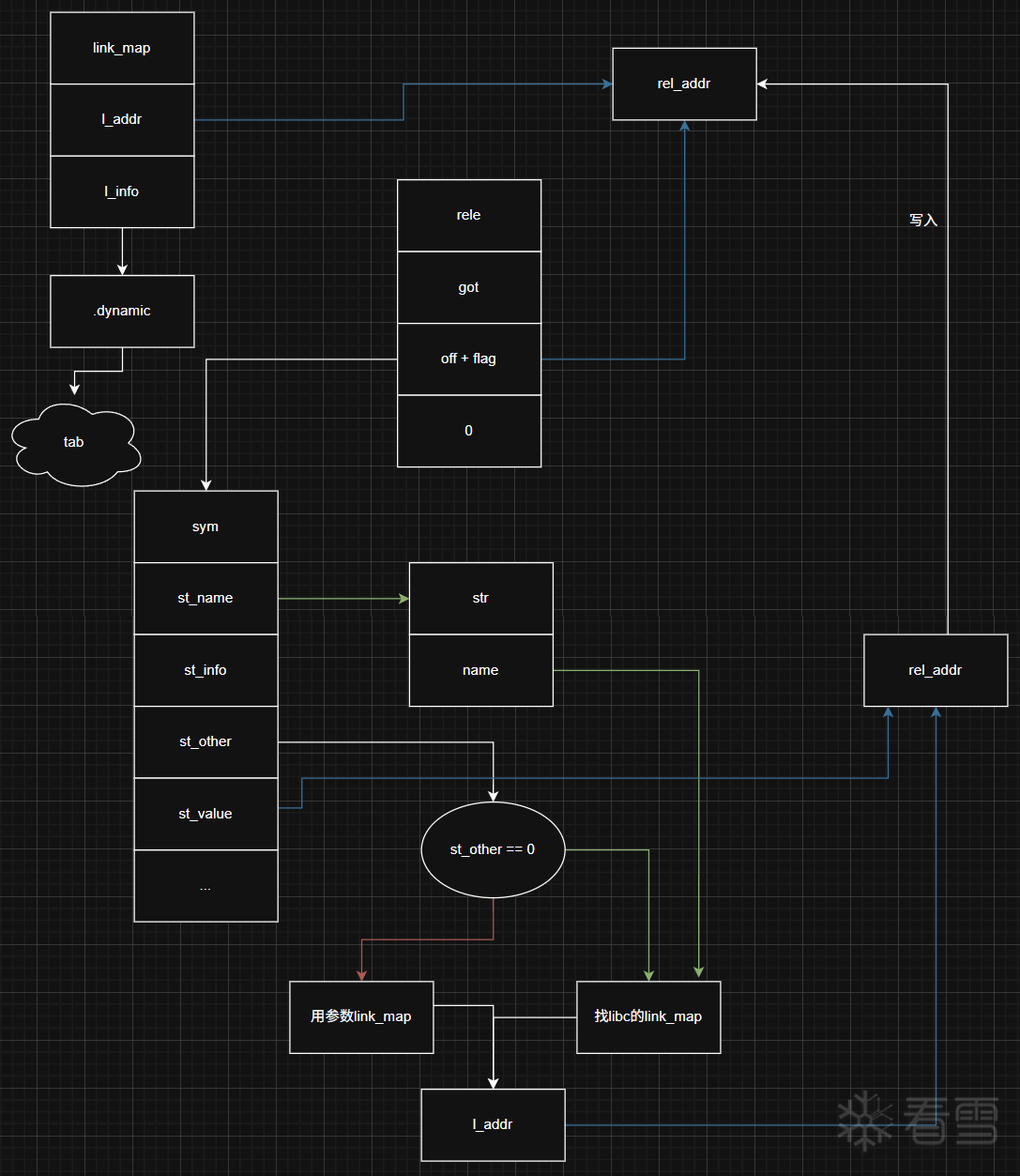 通过将sym结构体伪造在got表附近,使st_value与st_other命中合适位置